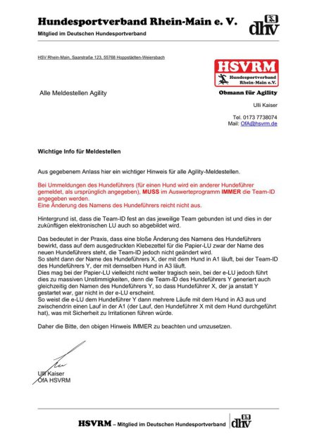 Bitte die Unterlagen zur Anmeldung direkt die OfA dhv verschicken