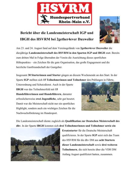 In der Zeit vom 23. – 26. September 2025 fanden in Staßberg die dhv Deutschen Meisterschaften im IGP und IGBH Sport statt.