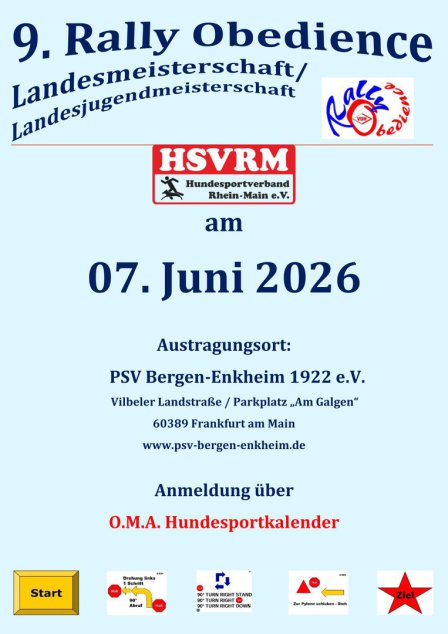 RO- Trainerschein Verlängerung und Neuerwerb voraussichtlich am 7./8. März 2026 in Kelsterbach. VdH Regelwerk. Verlängerung nur am Samstag. Voraussetzung für Erwerb des RO Trainerscheins ist eine mindestens mit der Wertnote ‚gut‘ bestandene RO Prüfung in der Klasse 2. Die Anmeldungen müssen über die/den 1. Vorsitzende/n des entsendenden Vereins in der Geschäftsstelle (info@hsvrm.de) eingereicht werden. Weitere Infos hierzu auf HP.